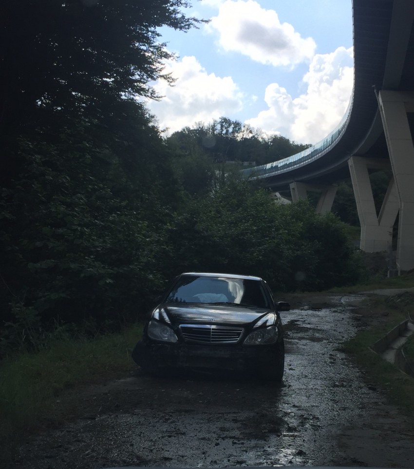 Автомобиль с явными признаками повреждений при ДТП уже не один день стоит спрятанный на технологической дороге под объездной.