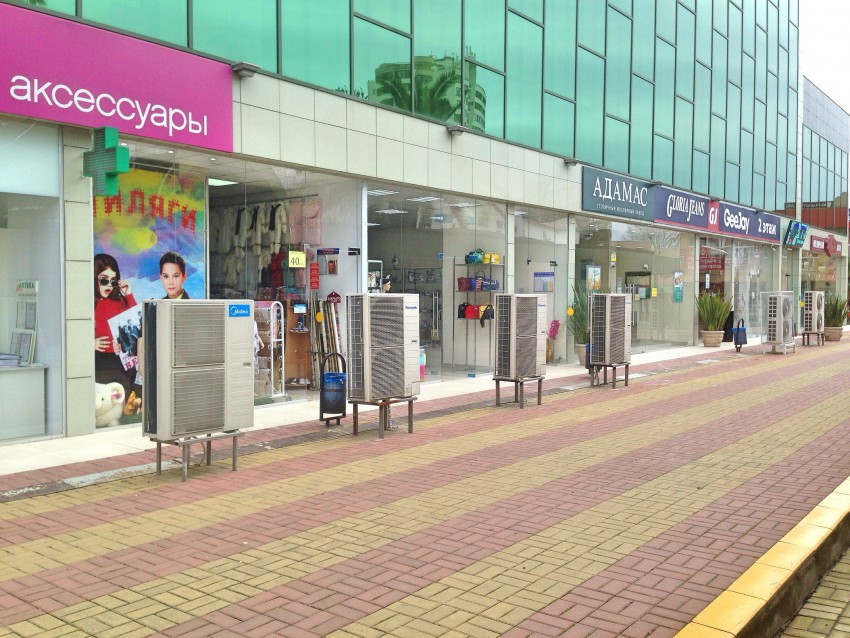 Пожалуй, наиболее убогая установка внешних блоков систем кондиционирования для торговых площадей Адлера.