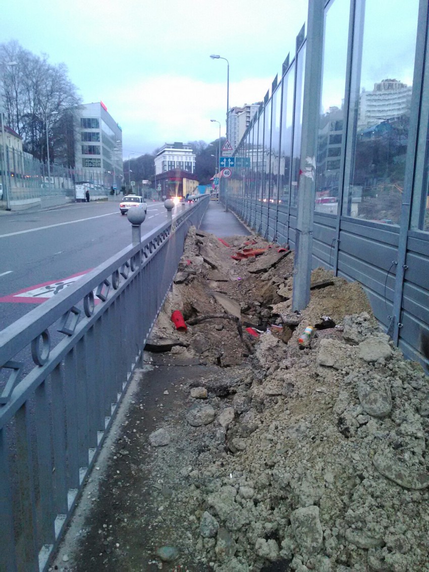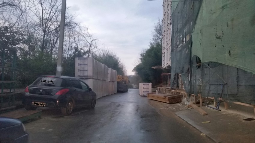 Кудепста. Ул. товарища Камо превращена в склад строительных материалов и парк спецтехники. Дорожное полотно убито