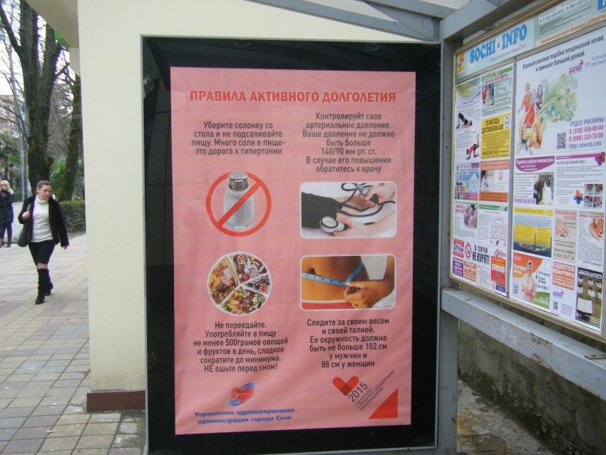 Наконец-то нашла положительный пример работы Сочинских властей — социальная реклама на автобусной остановке )))