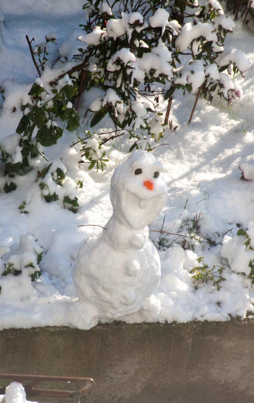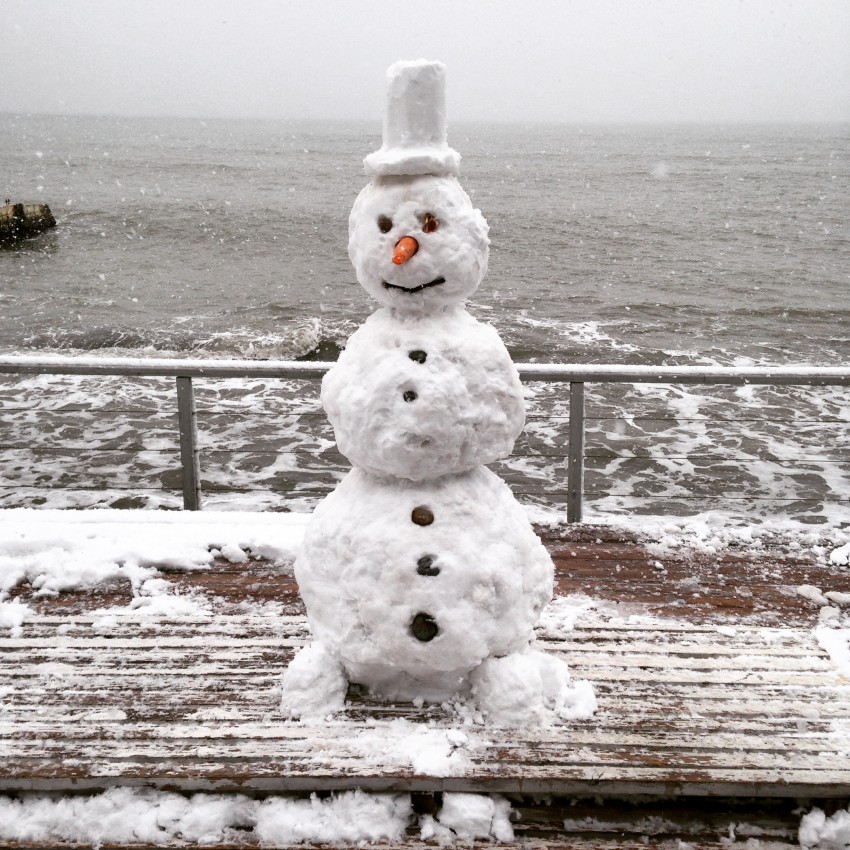 Классический сочинский снеговик, руки — ветки пальмы, рот и глаза — финики с той же пальмы :)
