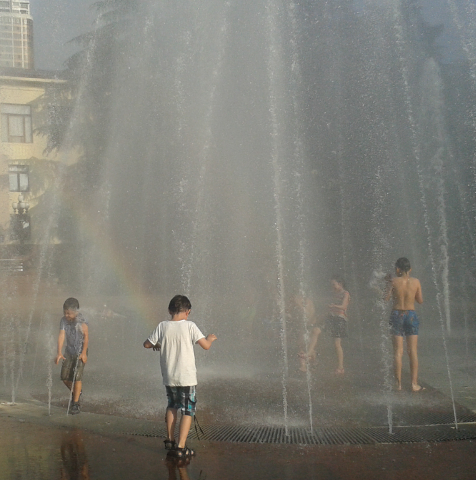вечер на площади, радуга, дети…
