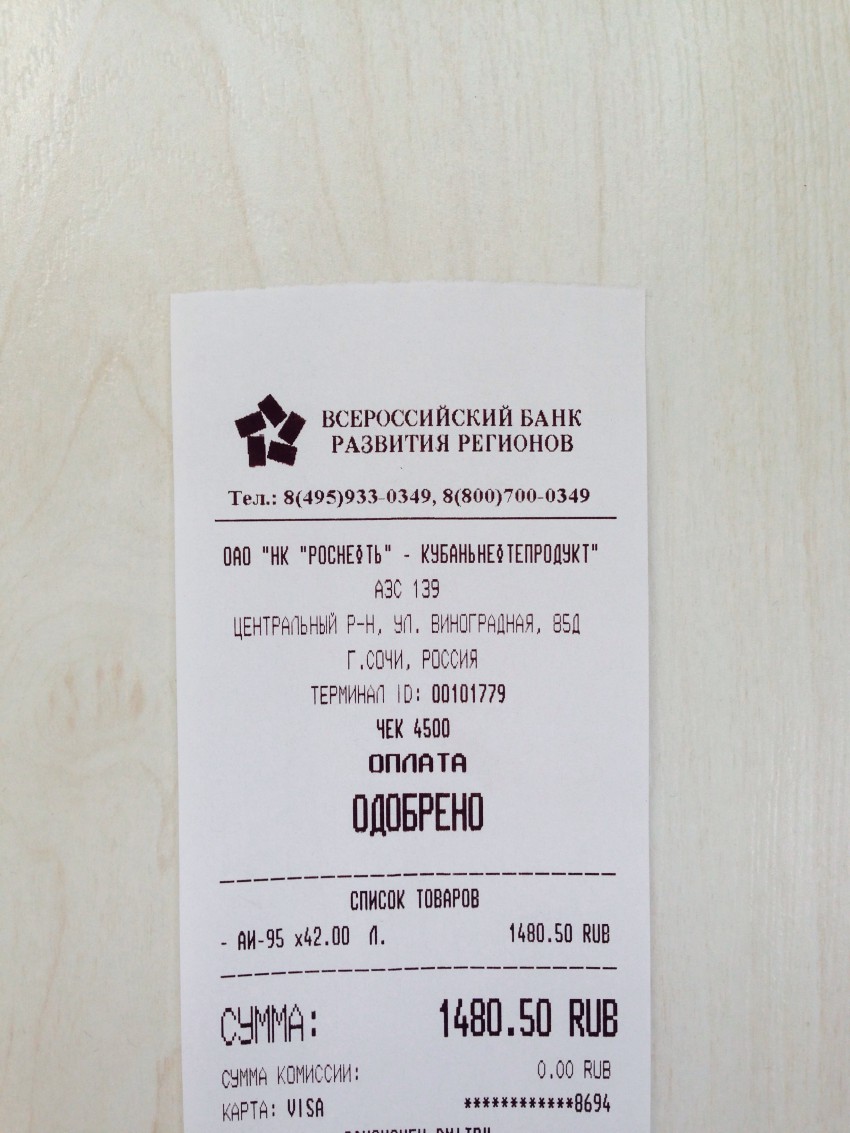 На заправке Роснефть вчера подарили литр бензина. Разница между чеком и табло в 42 рубля.