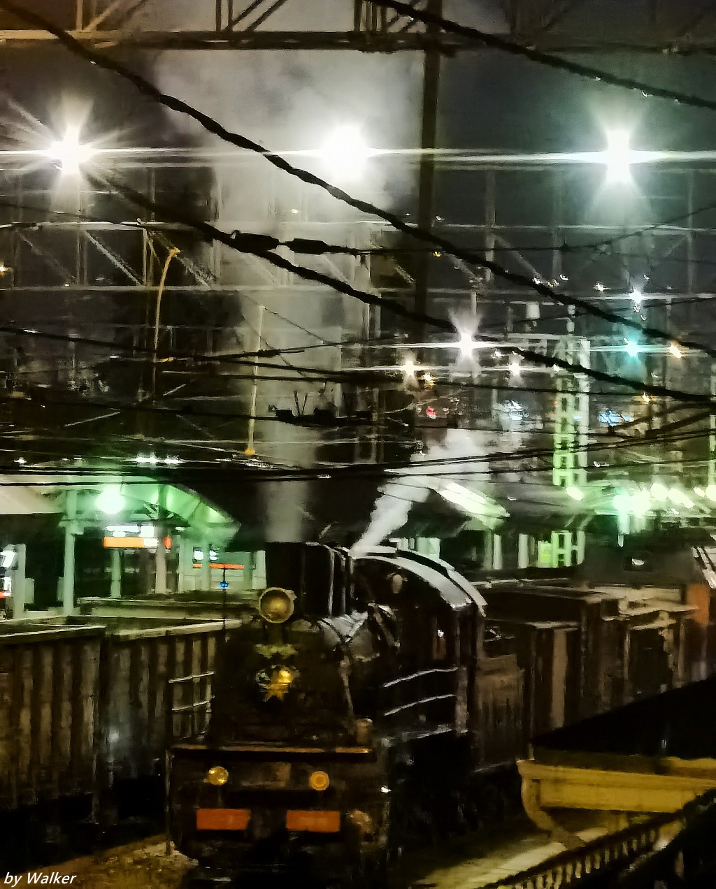 Пускает пар, гудит на весь город, и лихо таскает вагоны.