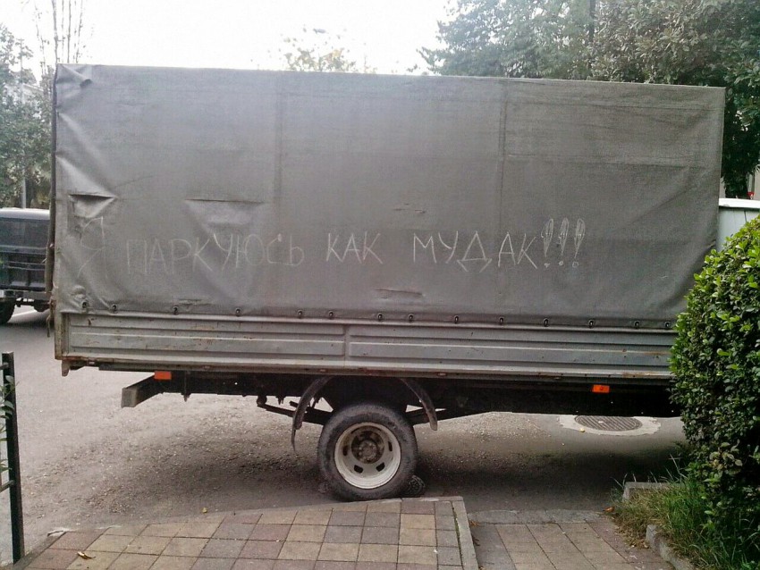 Когда гуляешь с ребёнком и очередной мудак перегородил тратуар, а у тебя с собой есть мелок… :)