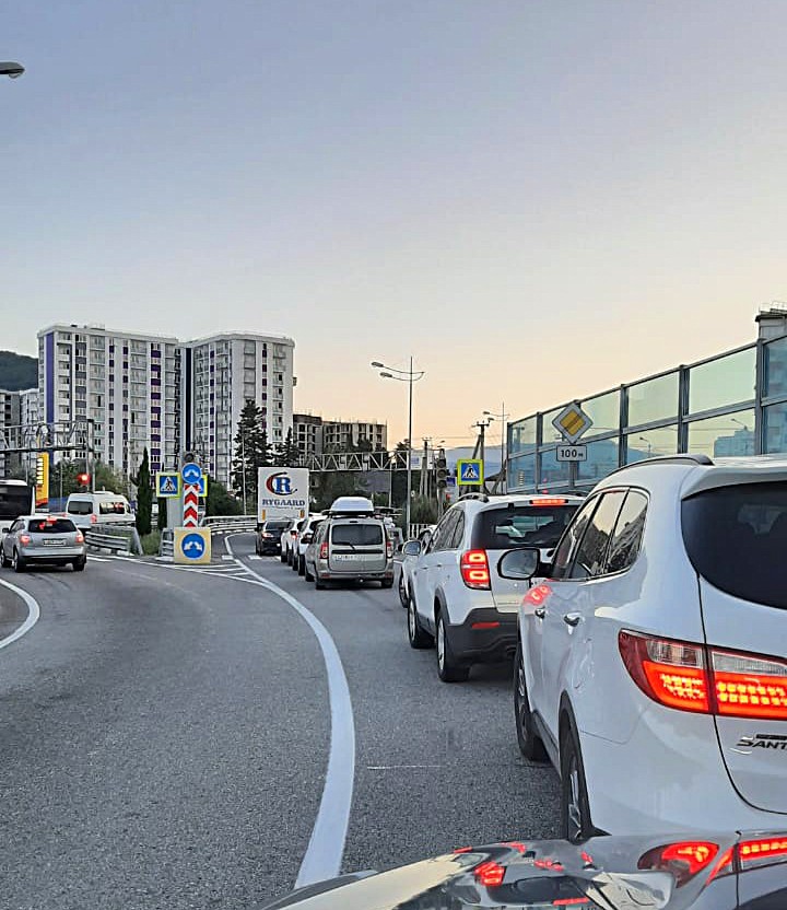 Для желающих сейчас поехать в Абхазию. 19 июля 6 часов утра. Пробка с километр только до ворот КПП.
