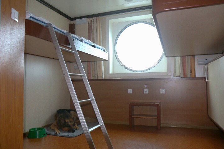 Пес на законном месте в каюте для путешествующих с собакой (паром Таллин-Хельсинки)