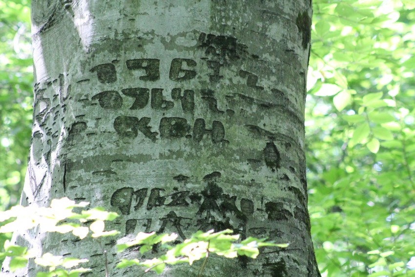 Гуляя в лесу с дочерью, вот такую надпись увидели на стволе дерева