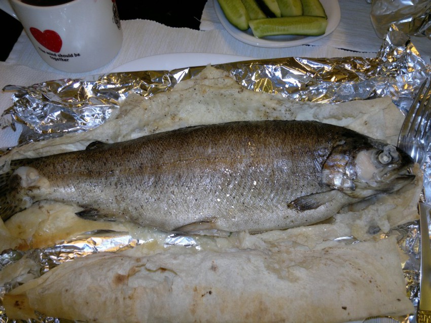 Форель фаршированная зеленью и лимоном в лаваше. Готовим дома.