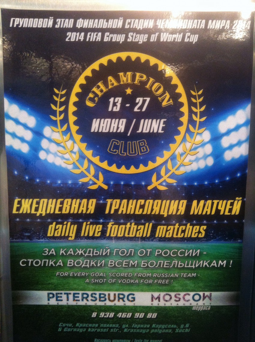 «ГоркиГородМолл», Эстонский Садок.Не думаю что посетители сопьются с такой игрой нашей Сборной.