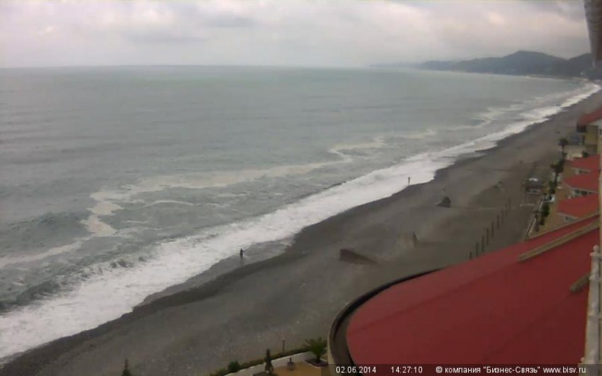 второй день такая полоса пены в море, вчера в Дагомысе такая же была