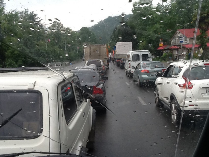 Дагомыс, уже больше часа стоим в пробке, где то авария! Кто собрался ехать — подумайте!