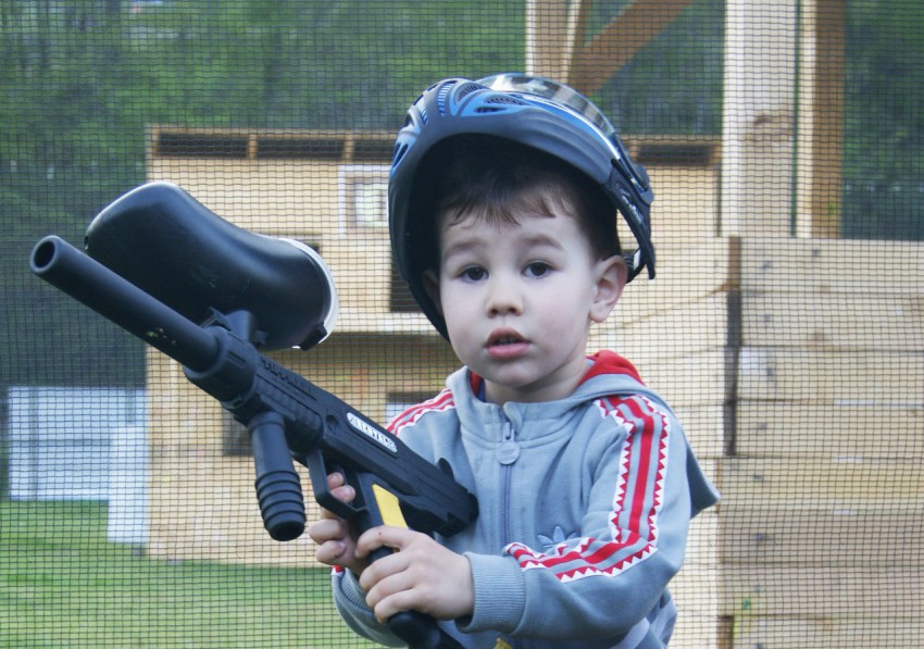Артему без малого 3 года, и он мечтает играть в пейнтбол))