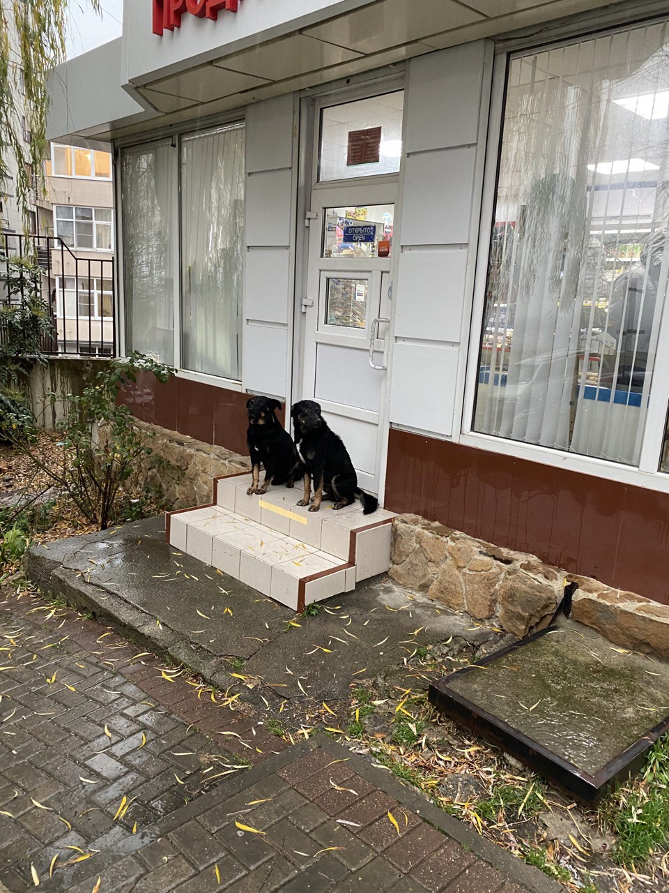 Певец улицы у супемаркета «Перекрёсток