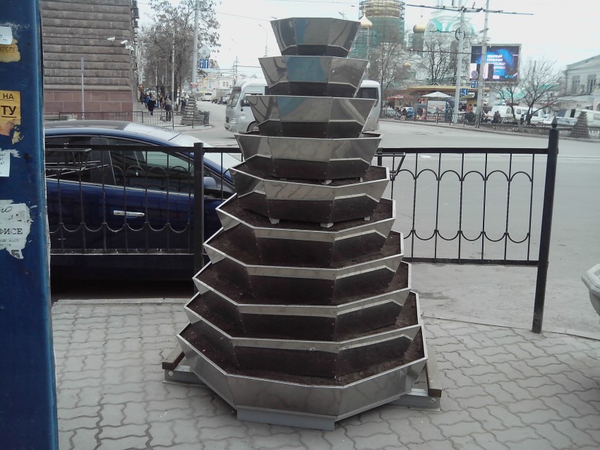 ростовский вариант вертикального озеленения, несколько таких видел.Горшочки наши то поприятнее будут)