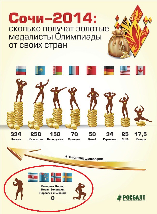 Премиальный фонд медалистов по разным странам.