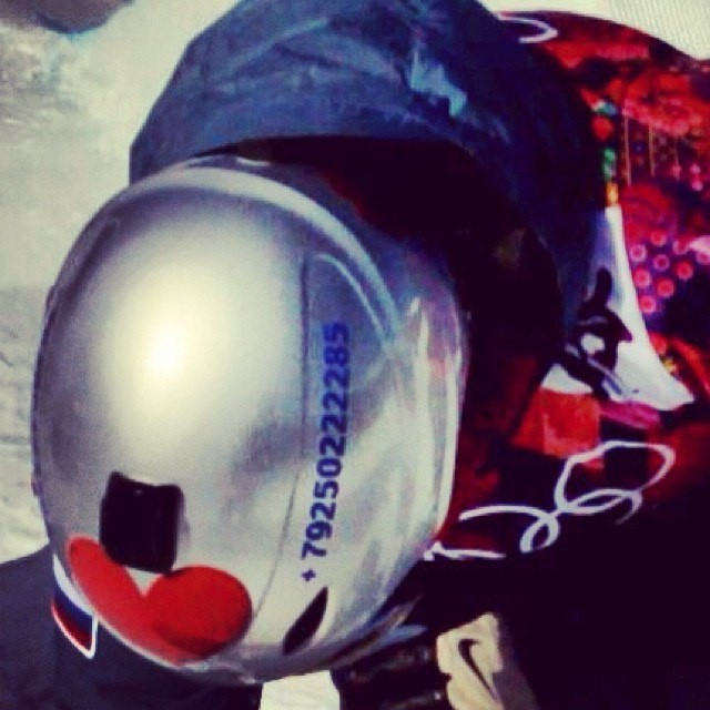 Сноубордист написал свой телефон на шлеме. Девчонок клеит=)