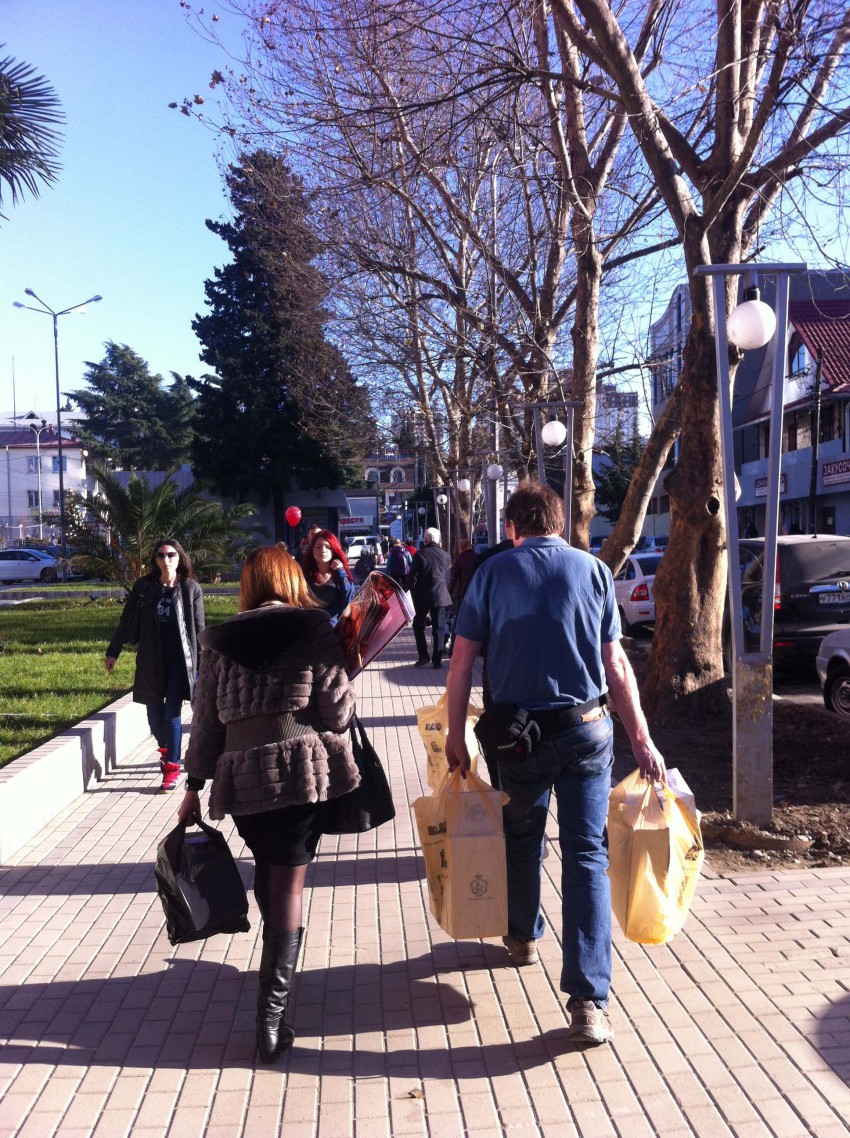 Только в Сочи спутница может идти в полушубке, а спутник в футболке