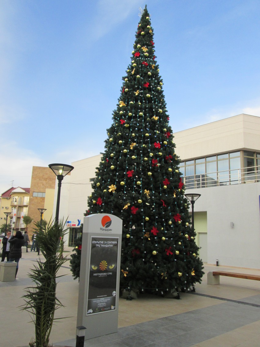 Ну очень красивая ёлочка в Адлере у торгового центра «Мандарин». Приходите фоткаться.