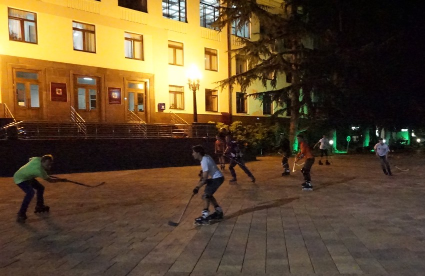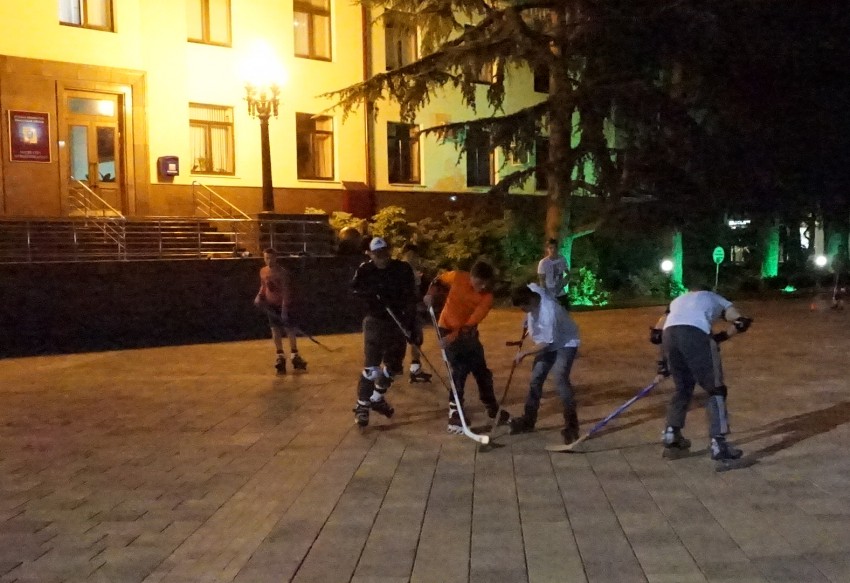 Уже забыли, но в 70-е годы, в Сочи в каждом дворе была дворовая хоккейная команда. Все было самодельным: клюшки, щитки, ворота (обтягивались сетками от мешков для картошки). Играли на роликовых коньках (которые были куда как качественнее и быстрее современных) теннисным мячом. У каждого двора была своя площадка (любая площадка с асфальтовым покрытием), а игры между дворами проходили на этой самой площади «перед горкомом».