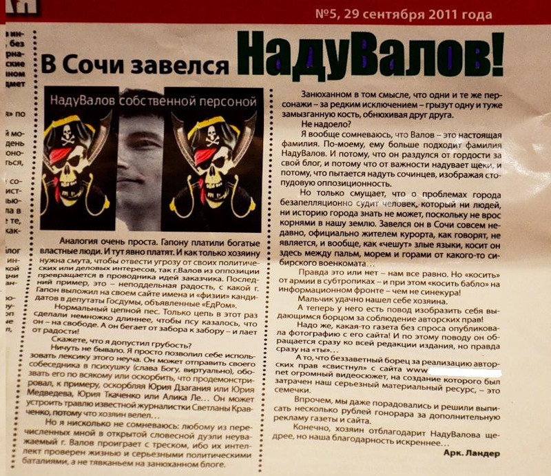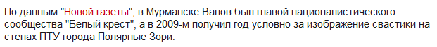 Когдато здесь на ПриветСочи был интересный персонаж «Штирлец» так он раскопал в Инэте о том, что А.Валов пытался создать молодежную-фашисткую организацию, где то еще в Сибири откуда он родом!!!