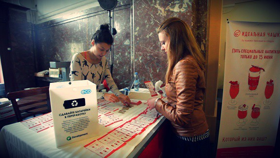 Например, на прошедшем в Санкт-Петербурге фестивале экологических фильмов «Экочашка» можно было сдать ненужные батарейки, а взамен бесплатно выпить свежесваренный кофе. Такую акцию проводила кофейня «Идеальная чашка». Кстати, в некоторых точках этой сети подобное предложение действует постоянно. За 20 отработанных батареек (любого вида и размера) вам нальют американо, капучино или какао.