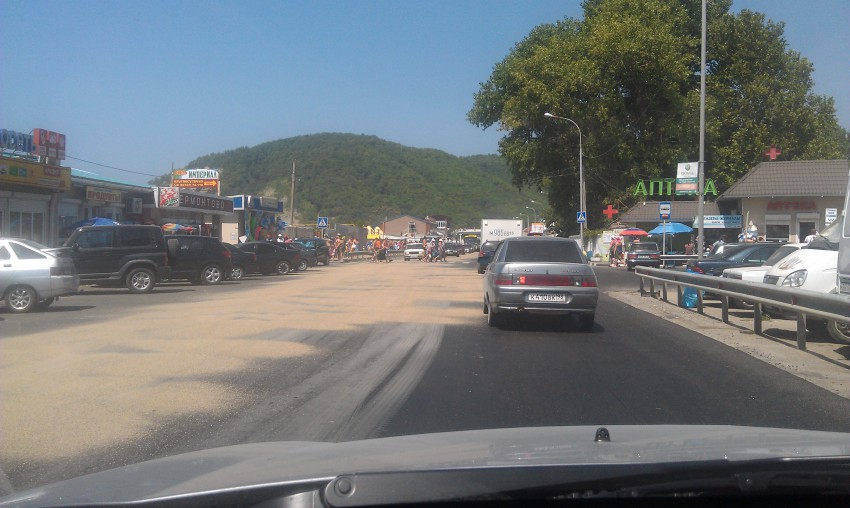 Вообще дорога туда получилась невыносимой. ШЕСТЬ ЧАСОВ до Джубги это пи-ц. Обычно до Краснодара 4,5, максимум 5 часов. Пробка в лоо, в Лазаревке, перед Туапсе вообще жесть. Думал до переезда, нефига. Дальше на выезде из города на горе еще авария. 2 часа стояка в Туапсе. И наконец в Джубге полицаи-козлы устроили такую!!! пробку, ё-е регулировщики, + светофор с реверсом.