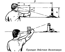 внимание обращает положение прибора. т.е. чтобы задать высоту (которая нанесена на карте) берем обратную сторону прибора и вносим её туда. А потом разворачиваем вертикально и измеряем угол. Механически рассчитывается Тангенс угла, или котангенс (в зависимости от того, что нужно вычислять — дальность до объекта или его высоту)
