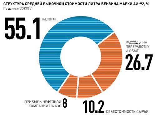 Выходит, что практически 60% стоимости литра топлива накручивает государство.