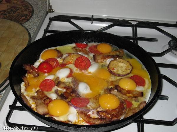 У меня омлет. Все на большом огне готовилось, но недолго. «наркотик» — сало положил в последнюю очередь специально, иначе получаются «выжаренки» корочки от сала и много жира. Ну кому что нравится.