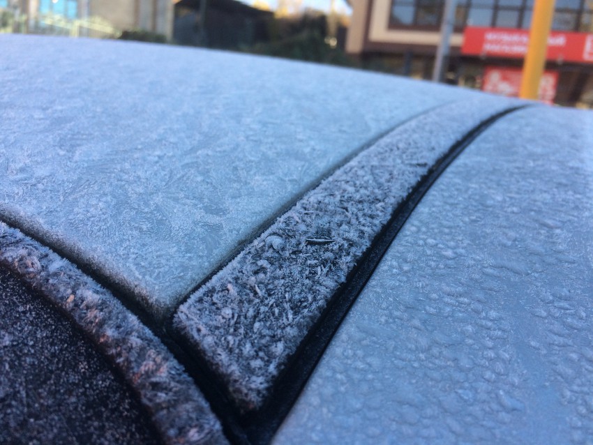 Сегодня в 9 утра приехал на стоянку Магнита на Новой Заре. Парканулся на открытой площади рядом с той самой машиной, которая вся была в инее. Это действительно так. Сам удивился.