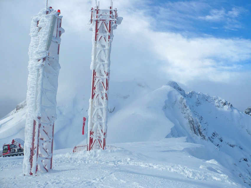 Там прямая видимость на Сочи есть, Неву и Олимпийский видно. Когда не было оптики на поляну — работали таким образом. Правда, там почти всегда был переход через слой облаков, поэтому была сильная дифракция. Считали зоны френеля и прочее. И молнии туда лупили часто, жги оборудование.