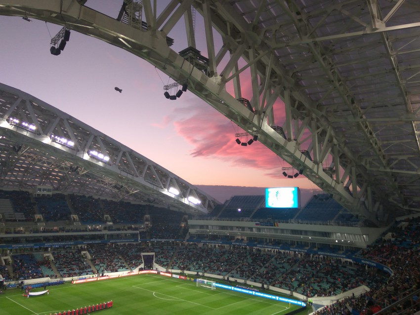 Мне вот звук не понравился на стадионе — в динамиках половины слов комментатора было не разобрать. И составы команд почему-то он не объявлял и даже на табло не вывели.