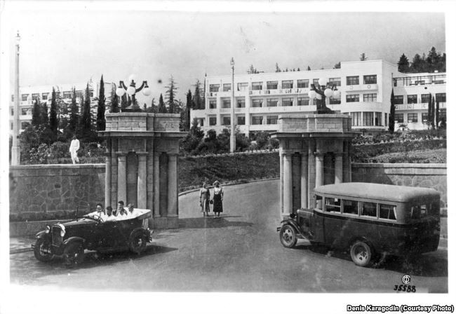 коллективная фотография кадровых сотрудников НКВД СССР на отдыхе в Сочи, 1938 год. Точное место: Санаторий НКВД №4. На фото (всего) 37 человека. Подпись на фото: «Шахматный турнир». Дата: апрель-май 1938 год. Место: Санаторий НКВД №4, г. Сочи.