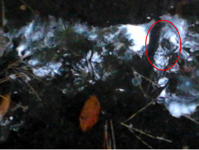 Убирая аппарат после съёмки случайно нажал на какие кнопки, не видел. Получилась микросъёмка. На фото, волны от больших капель дождя падающих с листьев дерева в большую лужу.