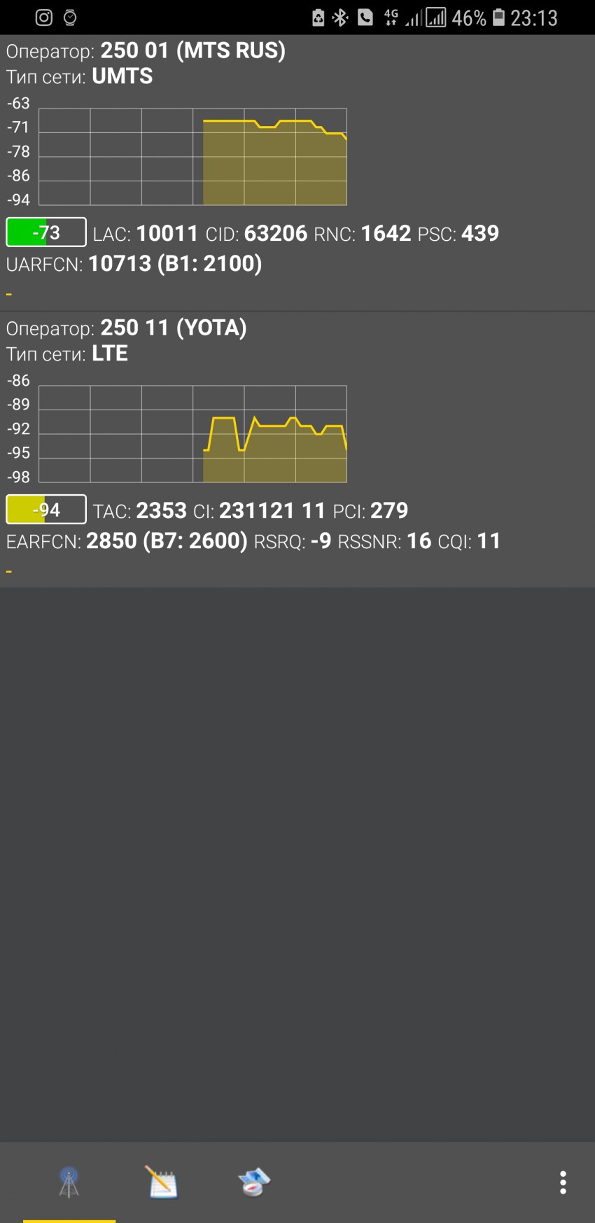 они показываю не точное а предположительное местоположение, я бы не стал верить этим приложениям. Пользуюсь NetMonitor там есть диапазон, номер БС, частота. Больше особо ненужно.