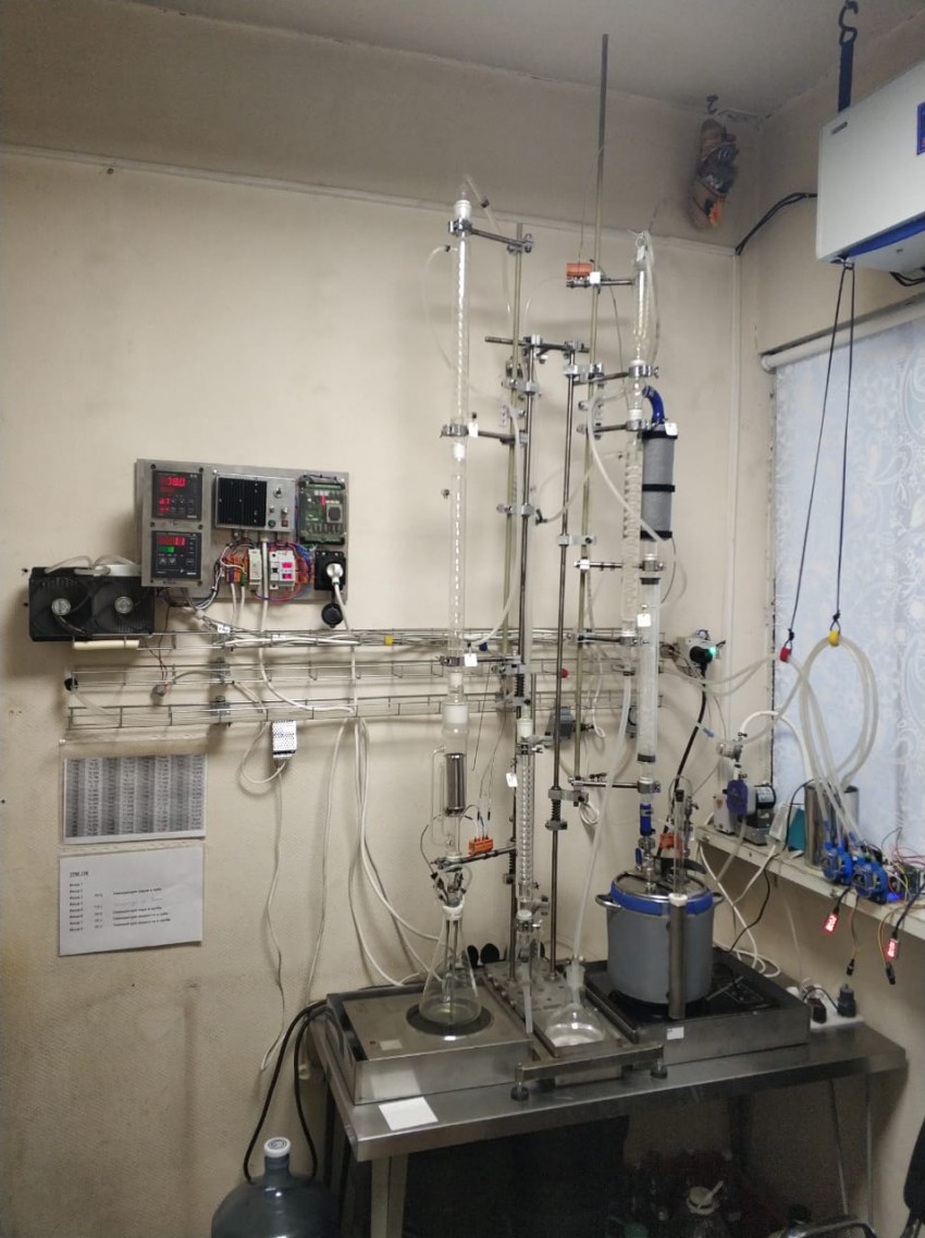 Система полностью автоматическая (на стене стенд с семиканальными датчиками). Управление температурой в кубе идёт по давлению, меняя силу тока в нагревателе. Ну и защитная автоматика по разным параметрам…