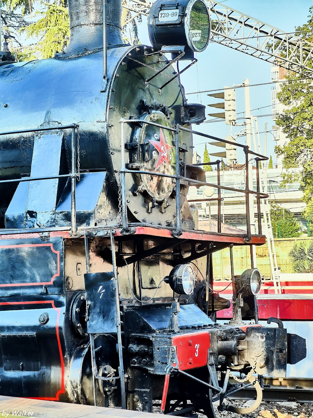 Пускает пар, гудит на весь город, и лихо таскает вагоны.
