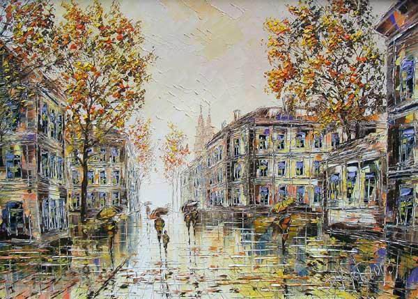 Вечер, идет холодный дождь. Кругом лужи. Бредут замерзшие люди. Стоят пальмы с лампочками, Тоска. Коронавирус. Прививки. Кюар коды… А женщина загадка под зонтиком пролетела мимо…