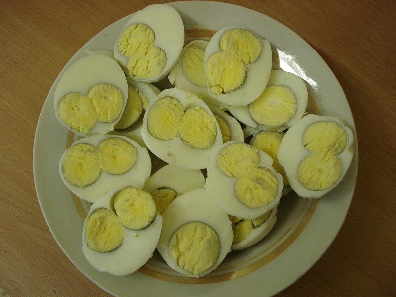 не хавай это, а то хвост вырастет… явно какая то изменённая генетика… ну раз попало ну два, ну чтоб так в коммерческих целях пачками куры несли именно двухжелтковые — что то им там накрутили с генами