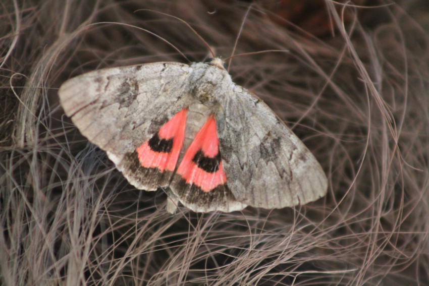 А вообще любит сидеть на стволах деревьев эдаким серым треугольником, красных нижних крыльев тогда не видно. Только когда взлетает свою красоту показывает. Летает довольно-таки тяжело, хаотично, на мой взгляд)