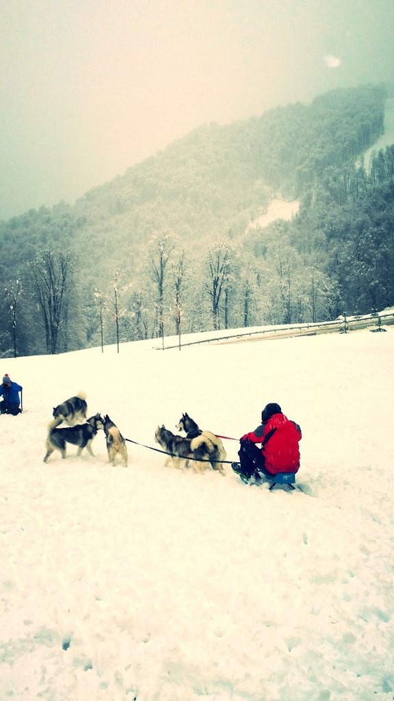 так вы собак только расхолаживает, потом в нарты не сможите запрячь… сук вперед, тех что жирные, кобелей, что бегучие но худые назад, покрышку на веревку, и вперед… у вас место крепление приструги к харнесу (если это вообще харнес, а не ошейник), сразу на спине, это давит не на грудь собаке, а на шею, нервируя её, закажите по инету dog sledding hurnes их там как грязи… наслаждение от слаженной работы хаски по тасканию покрышки с человеком не передоваемое… это круче чем секс…