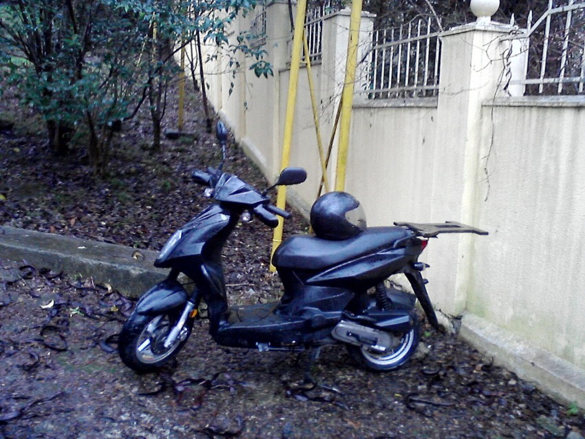 Да вообще, всё тут странно. Во-первых, ни один нормальный хозяин шлем не оставит, а возьмёт с собой. Во-вторых, на задворках, где вблизи нет жилья, вряд ли бросит своего «коня». В-третьих, следы от «хозяин катается» не наблюдаются. Там вокруг грязь, было бы видно.