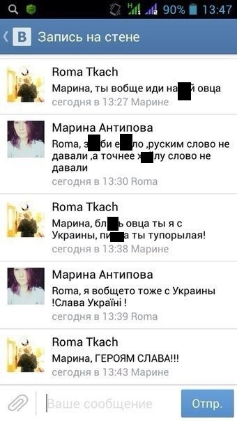 Так натравили (мнимо-братский) соседствующий народ на Россию, что у тех от ненависти кал закипает, и это при отсутствии религиозных различий. Достаточно было заокеанскому хозяину сказать фас, как тамошние цепные псы устроили вакханалию. Так что ни история, ни связи вековые, ничего уже не влияет, мнят в России врага, а за океаном прямо сплошь друзья объявились, кто аж наперегонки грезят, чтобы Украине стало жить хорошо. Вроде ирония понятна, но после успешного одебиливания так и говорят. Так что если скоро будут утверждать, что Сочи — это тоже часть Украины, да и вообще вся Россия Украине принадлежит, да ещё весь мир от Украины произошёл, да и вовсе первый человек зародился в украинских пещерах — не удивляйтесь! Это популярный приём для войны. И сиё тоже.