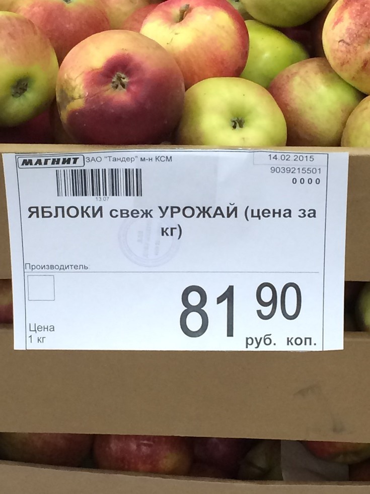 Где вы такие дешевые яблоки нашли? В Окей заходил на выходных, закупался продуктами, хотел для соковыжималки яблок недорогих взять, так самые дешевые были 150 рублей. Пришлось отказать себе и пойти в другое место за ними)