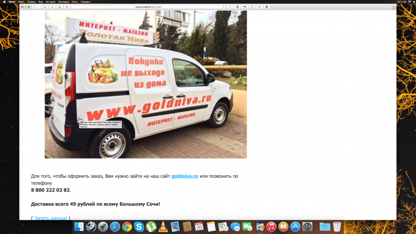 Кому из Дагомыса на авто за 49 рублей доехать надо? Обращайтесь в Золотую Ниву. Я ведь с сарказмом выше написал про доставку в любой район за 49 рублей при заказе на любую сумму. Попробую завтра заказать в течении дня. Очень удивлюсь, если пачку семечек мне привезут в Хосту из Дагомыса за 49 руб.