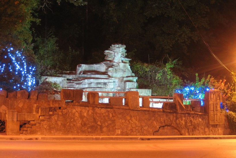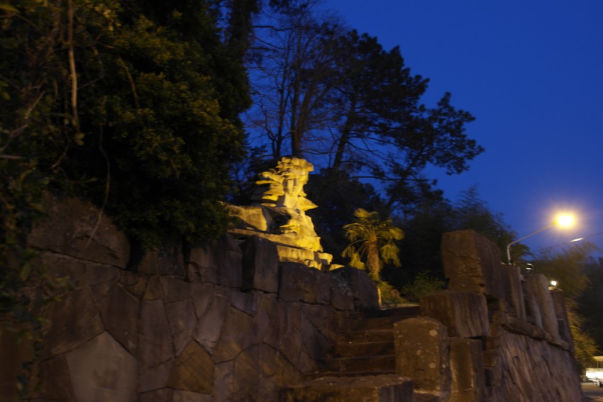На настоящий момент уже нет ее. Но и подсветка самой скульптурной композиции после многочисленных краж прожекторов и последующей установки новых (каждый раз в разных местах) изменилась… И фонтан перестал работать (украли провод)