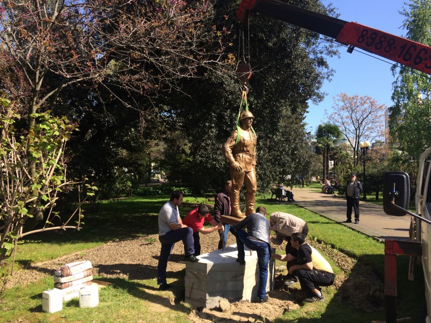 Установка памятника СОЛДАТУ в Комсомольском сквере