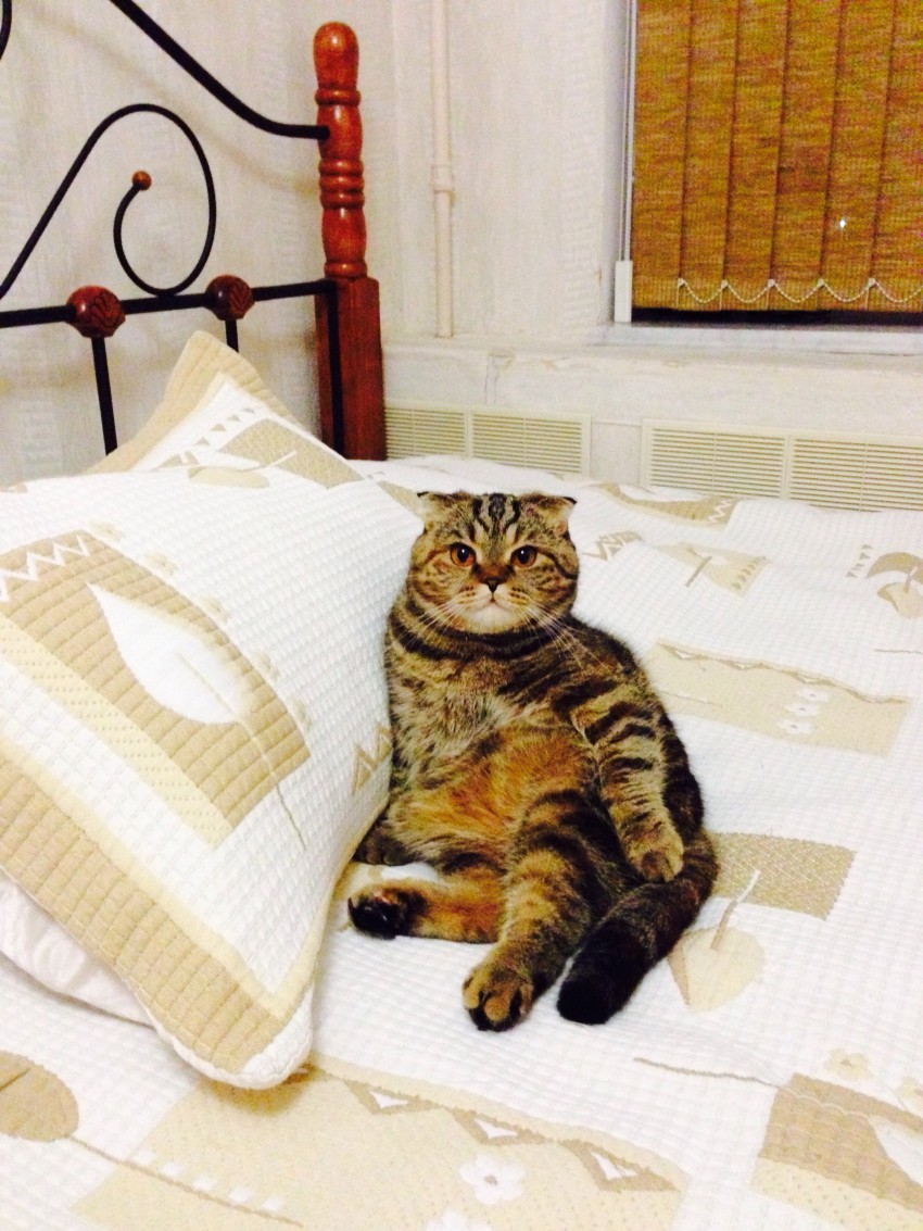 Мой тоже так спит, особенно когда отопление отключают или после стрижки. Прям сидит и ждет пока я покрывалом взмахну при заправке кровати — юрк туда сразу.