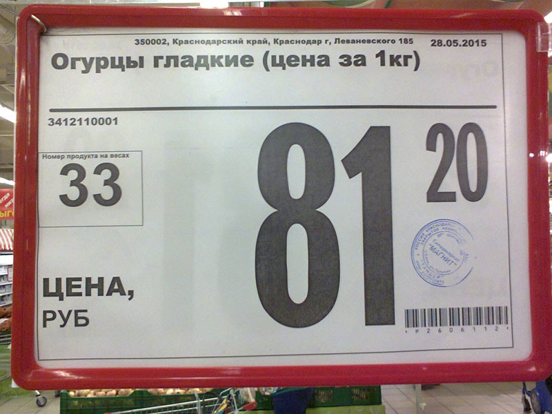 Если вы про надпись мелким шрифтом в самом верху — так если верить этой надписи, все без исключения товары, в т.ч. бананы, киви и т.п., выращены в Краснодыре по адресу Леваневского, 185